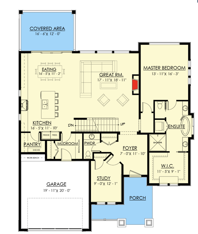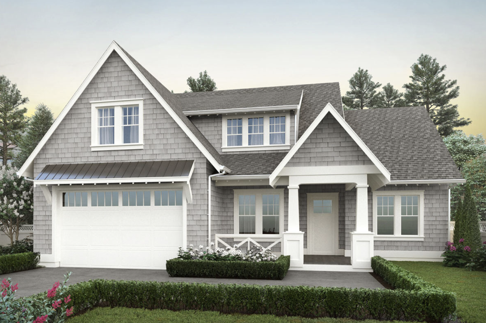 Shake siding adorns the facade of this exclusive, Craftsman home plan, adding texture and character to the exterior.